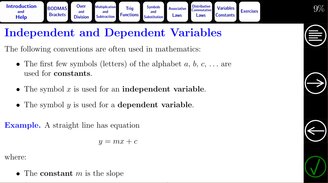 Dalam tutorial ini, kita melihat bagaimana mengevaluasi ekspresi dengan BODMAS, dan bagaimana menggunakan kalkulator ilmiah untuk mengevaluasi fungsi trigonometri. Kami kemudian melihat hukum dasar aljabar (asosiatif, distributif, dan komutatif). Kami akhirnya memperkenalkan konstanta, variabel independen, variabel dependen dan substitusi.