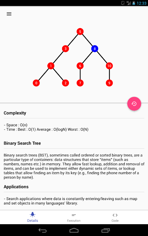 Deskripsi, kompleksitas dan referensi juga disediakan bersama dengan kode untuk visualisasi dan implementasi.