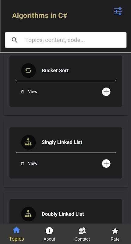 Anda dapat memfilter konten berdasarkan kategori atau Anda dapat mencari konten berdasarkan topik, deskripsi atau kode tertentu.