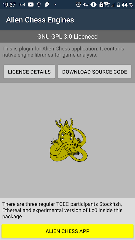 Plugin berlisensi GPL 3.0 untuk aplikasi Alien Chess yang berisi kumpulan pustaka asli Stockfish, Ethereal, dan Lc0.