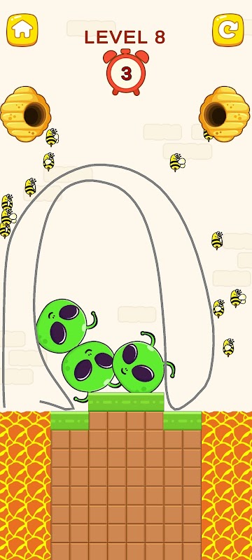 Kesulitan yang Meningkat Secara Bertahap: Saat pemain maju melalui level, kesulitan meningkat secara bertahap. Pada level awal, cukup dengan menggambar garis lurus untuk melindungi alien. Namun, pada level selanjutnya, pemain diharuskan untuk menggunakan berbagai strategi secara komprehensif dan bahkan mungkin perlu memanfaatkan item tersembunyi di level atau memicu mekanisme tertentu untuk menyelesaikan tugas. Misalnya, di beberapa level, pemain harus terlebih dahulu memicu mekanisme untuk memindahkan sarang lebah ke posisi tertentu dan kemudian menggunakan rintangan untuk menghalangi rute pelarian lebah.