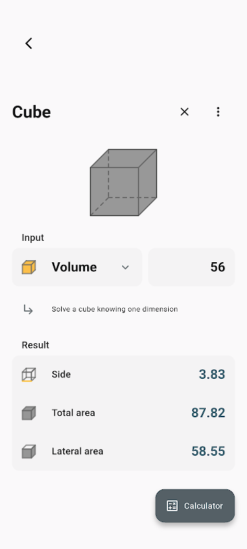 • Kalkulator tubuh untuk kubus, persegi. prisma, piramida persegi, frustum piramida persegi, silinder, kerucut, frustum berbentuk kerucut, bola, tutup bola, frustum bola, ellipsoid