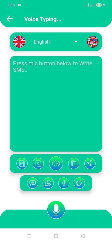 Semua bahasa Keyboard pengetikan suara adalah untuk menghemat waktu berharga Anda. Aplikasi Pengetikan Suara Cepat & Mudah Semua Bahasa adalah aplikasi pengetikan suara semua bahasa tercepat dan termudah. Semua aplikasi keyboard pengetikan suara bahasa, Anda tidak perlu menggunakan cara menulis manual dengan keyboard. Dengan menggunakan aplikasi ini, semua bahasa keyboard pengetikan suara, Anda akan mendapatkan materi teks Anda hanya dengan satu klik. Dalam aplikasi keyboard pengetikan suara Semua bahasa ini, Anda cukup mengetuk tombol mikrofon, itu akan mengubah suara Anda menjadi teks/catatan bahasa yang Anda inginkan. Opsi keyboard pengetikan suara bahasa Inggris akan memungkinkan Anda menulis bahasa Inggris dengan mudah. Ini adalah aplikasi keyboard tipe suara terbaik.