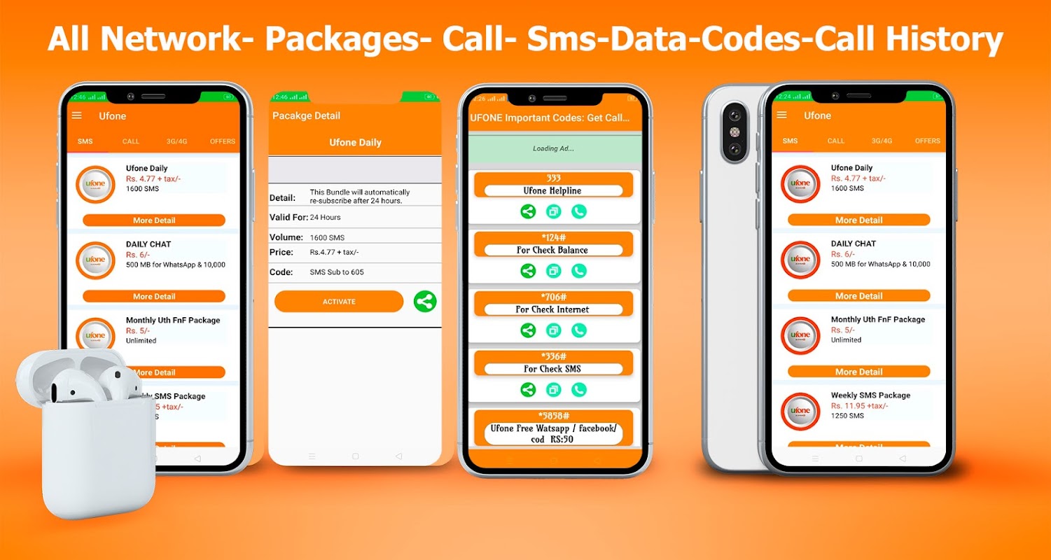 Anda dapat menemukan program Mobilink, Zong, Ufone, Telenor dan Warid berikut dan menyajikan catatan di aplikasi ini: