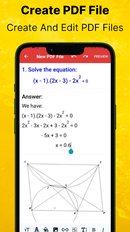 Buat PDF baru saat bepergian dengan fitur pembuatan PDF bawaan. Edit file PDF yang ada dengan menambahkan, menghapus, atau memodifikasi teks, gambar, dan anotasi. Nikmati pengeditan PDF yang mulus dan efisien langsung dari perangkat Android Anda.