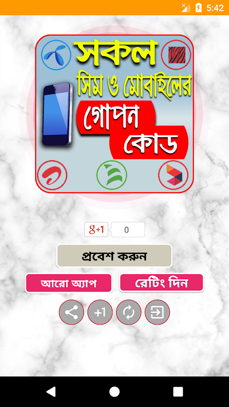 সকল সিমের দরকারি কোড জানা থাকা খুবি দরকার । বর্তমান সময়ে এক জনের নামে ২০ টি সিমের বেশি ব্যাবহার করা যায় না বা আপনি জানেন না আপনার নামে অনেকগুল সিম নিবন্ধন হয়ে আছে । আপনার সমের নাম্বার আপনি ভুলে গেছেন,বা সিমের যে কোন অফার জানবেন, হট লাইন এ ফোন দিয়া ,মোবাইল ডাটা নিয়া,ফোনে নেট সেটিং করা, এমবি কিনা, এমবি চেক করা, মোবাইল টাকা লোড করা, টাকা চেক করা, ইমারজেঞ্চি টাকা নিয়া, হত লাইনে কথা বলা সহ অনেক কিছু আছে আমাদের এই অ্যাপটিতে।