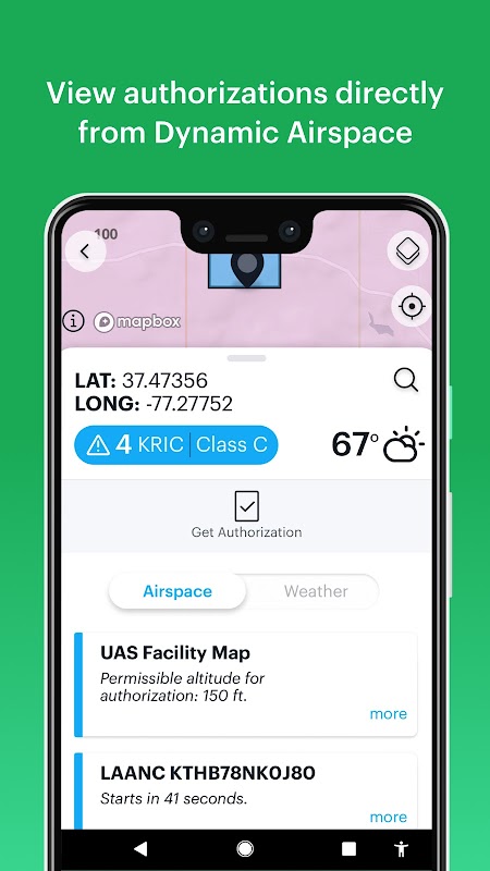 - Periksa wilayah udara dan cuaca dengan Aloft Dynamic Airspace
