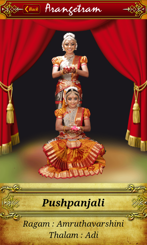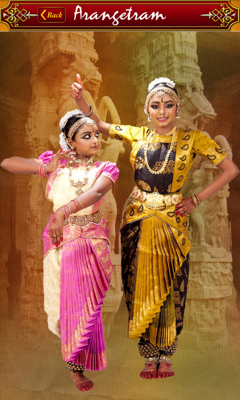 App ini terutama berfokus pada kinerja Indian Dance tradisional Selatan yang akan dilakukan oleh Amara dan Anika di mereka Bharatanatyam Arangetram. Aplikasi ini tidak hanya menunjukkan bakat mereka, tetapi aplikasi ini juga berisi sensor lokasi sehingga Pengguna dapat melacak arah acara dari tempat mereka saat ini. Aplikasi ini menunjukkan Pengguna tentang berbagai bentuk Dance mereka melakukan, gambar Tari dan mereka Guru dan Musisi yang juga akan berpartisipasi dalam acara tersebut. Bharata Natyam adalah bentuk tari India terkenal dari usia Weda.