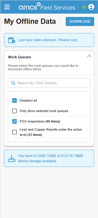 Aplikasi seluler pendamping AMCS Field Services, dioptimalkan untuk kerja lapangan.