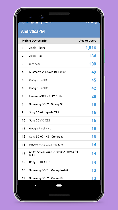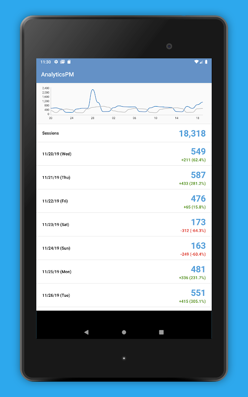 AnalyticsPM memungkinkan pengecekan cepat informasi Google Analytics dari Android Anda.