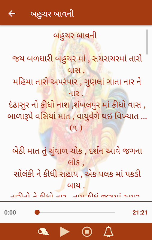 Maa Bahuchar Mataji - Anand no Garbo spiritual song of goddess Bahuchar Maa available in English, Hindi and Gujarati language. No Internet connection require for this app.