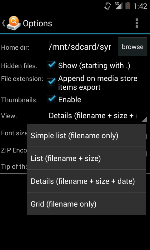 File explorer dan manajer, dukungan ZIP (opsional dienkripsi)