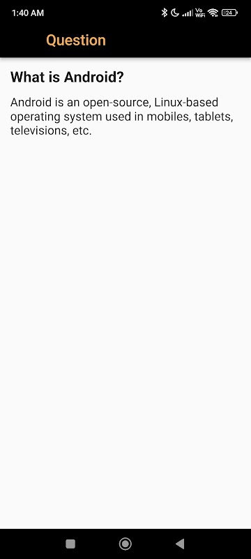 Pertanyaan Wawancara Android: Bagi mereka yang secara khusus tertarik dengan Android, aplikasi kami menyertakan bagian khusus dengan lebih dari 100+ pertanyaan yang berfokus pada konsep Android. Perdalam pengetahuan Anda dan tingkatkan kepercayaan diri Anda dalam skenario wawancara Android.