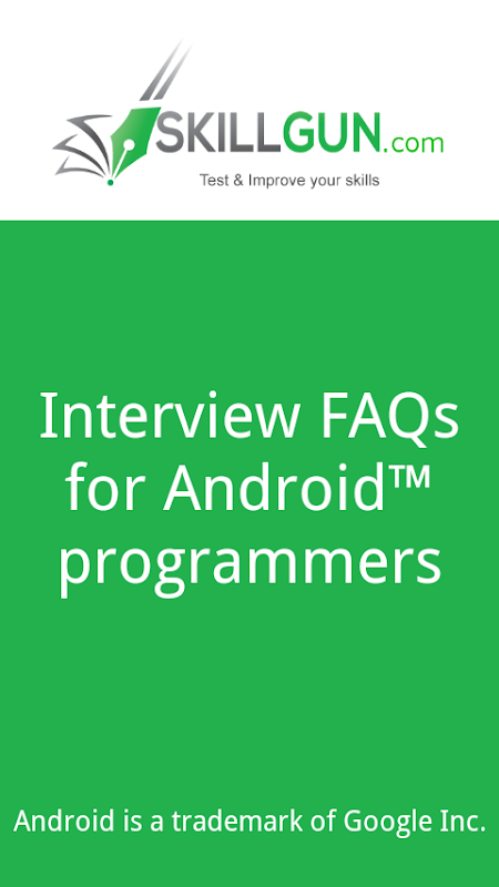 Set of 500 Interview Questions and Answers for Android™ programmers, Written and proof read by technical and development leads of Samsung. Your chances of getting job in mobile application development will increase with these set of questions. All Android interview questions in this applications are having clear explanations.