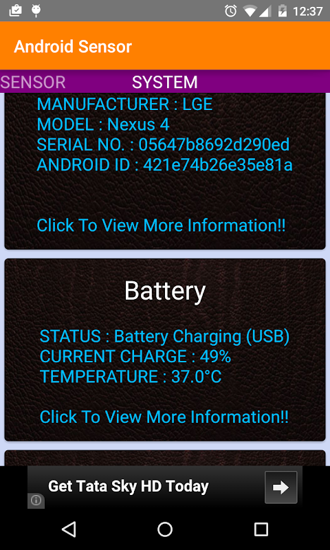 Android Sensor application shows sensors present in you phone along with Build, Battery and GPS information. It is a one stop tool for all the sensors present in your phone. You can monitor all the sensors from one screen. Check out all the raw data coming from the sensor. Also you can save the data with time stamp . Save as many times you want [No restriction] . Its free!