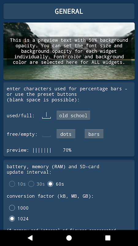• Interval pembaruan Baterai, SD, dan RAM ditetapkan ke 60 detik