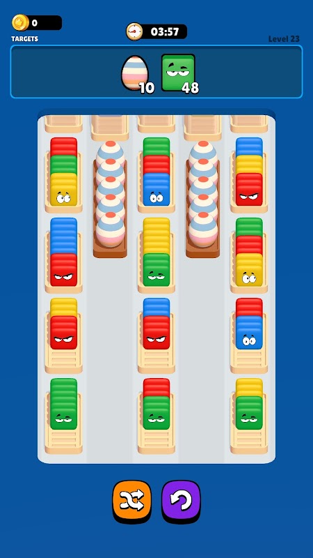 Uji keterampilan memecahkan teka-teki Anda dengan level yang menyenangkan dan menantang! Urutkan kubus berdasarkan warna dan selesaikan target untuk maju!
