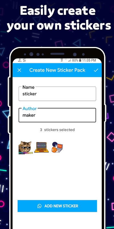 3. Beri nama pada paket stiker Anda dan diri Anda, lalu tambahkan ke Wa.