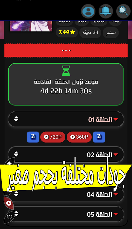 ويمكنط تحمييل الحلقات بجودات مختلفة دون قيود