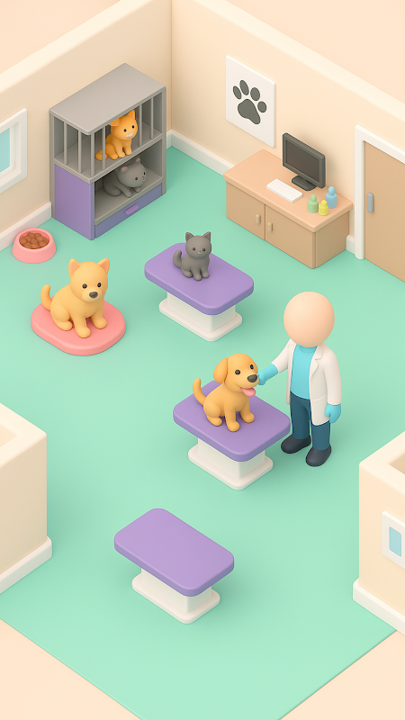 Bangun klinik hewan Anda sendiri, rawat hewan peliharaan, dan kembangkan kerajaan dokter hewan Anda!