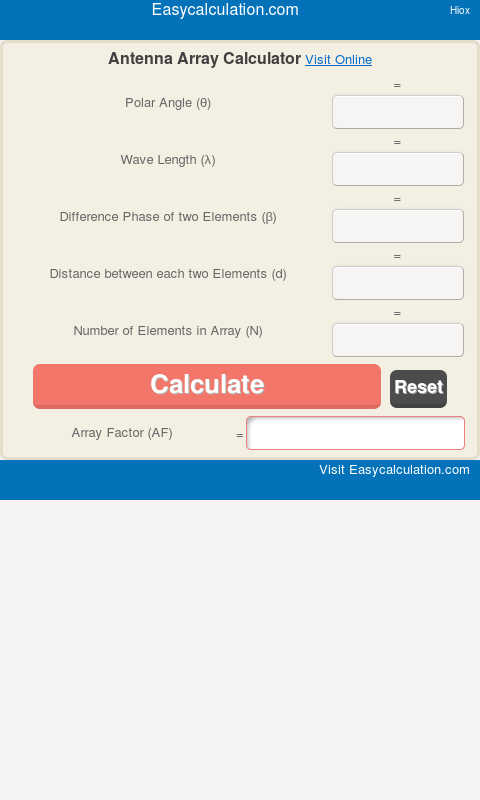 Secara online Antena Array Kalkulator untuk menghitung antena faktor Array.