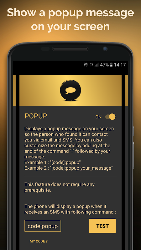 Send commands via SMS (text messages) from another device to your lost smartphone in order to enable any of the following features.