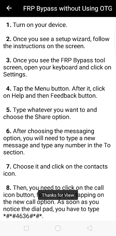 Aplikasi ini harus Apa itu FRP? bypass Google FRP unlock, Instruksi bypass OTG, FRP Bypass menggunakan Kode PIN SIM, Bypass Kunci SIM iPhone, Atur Ulang Ponsel Android Terkunci, setel ulang pabrik Android, Pulihkan data setelah reset pabrik, Pulihkan data Android tanpa cadangan, Bypass FRP tanpa Menggunakan OTG, dan banyak lagi. Saya pikir aplikasi ini yang Anda butuhkan. Kami harap Anda menemukan aplikasi ini Berguna. Jika Anda Menyukai Aplikasi Ini, Beri Lima Bintang.