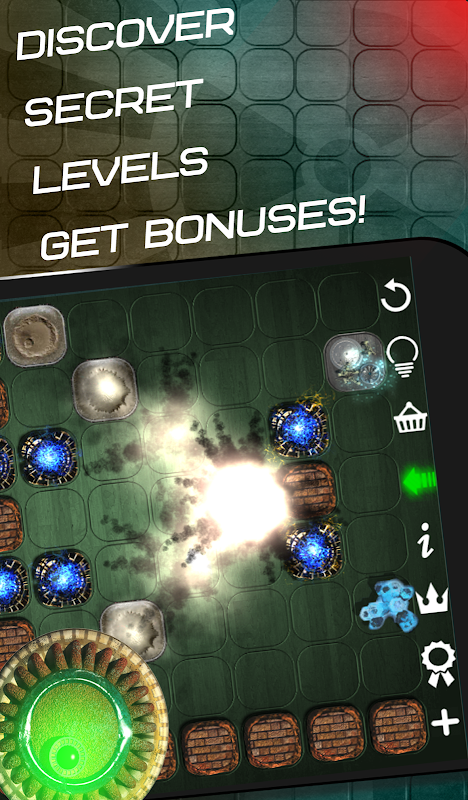 Logika permainan meretas pertahanan musuh, mengirimkan gelombang ledakan kiloton tepat ke sarang pangkalan alien! Tempatkan bom di lapangan bermain, buat rantai ledakan, hancurkan semua yang ada di jalan Anda dengan satu serangan kombo! Hitung kombinasi untuk sepuluh langkah ke depan! Tidak ada kompromi, tidak ada keberuntungan, hanya perhitungan yang tepat!
