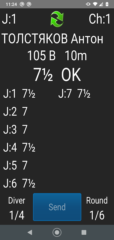 * Menampilkan nama penyelam, jumlah menyelam, posisi dan papan sebelum setiap menyelam