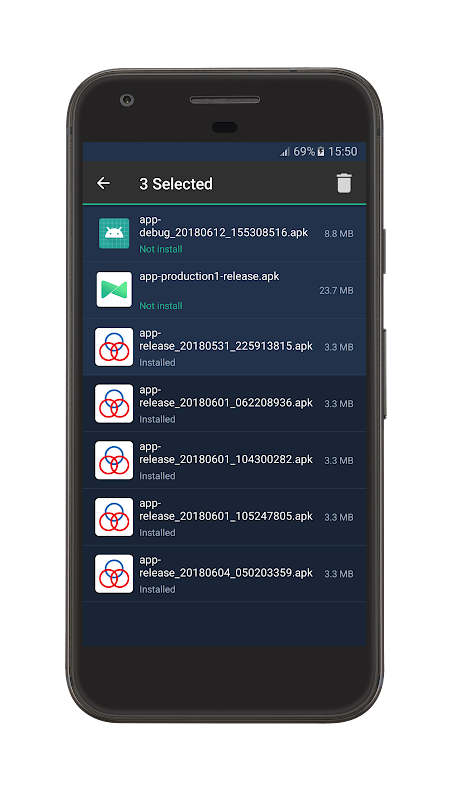 - Delete apk files from internal, sdcard storage.