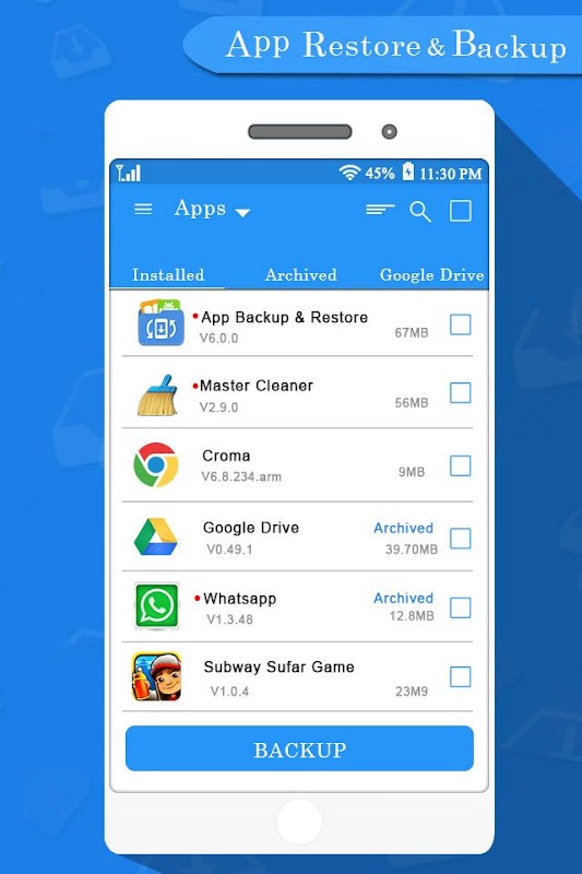 App Backup Restore - Backup your apps to SD card or RAM or cloud drive. FREE UP your device storage!