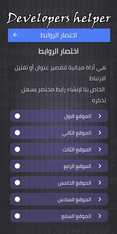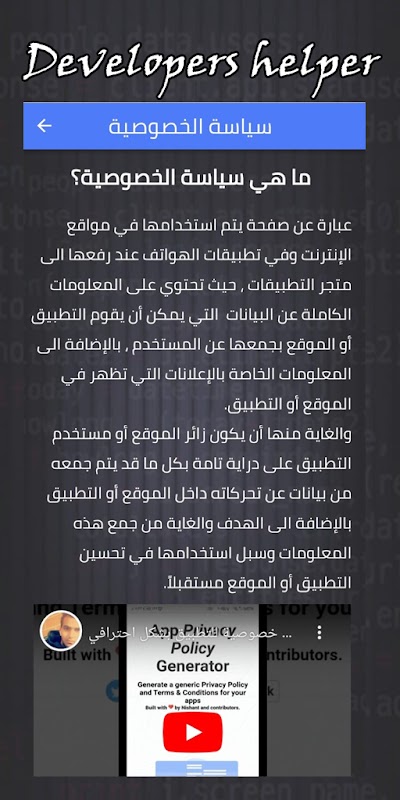 Developers helper - Dev tools includes many tools that help create and collect applications in a simple way, such as (privacy policy generator - app-ad-text file - keywords - application icon - URL shortener - Dev tools )