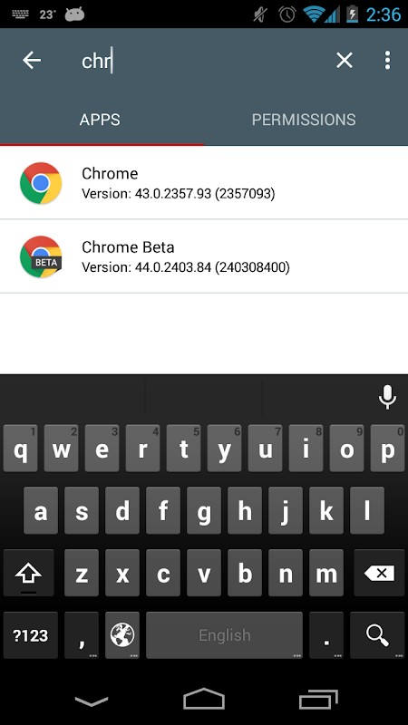 - Lihat sebuah aplikasi diinstal dengan informasi versi dan perizinan, perizinan pencarian dengan nama dan nama grup,