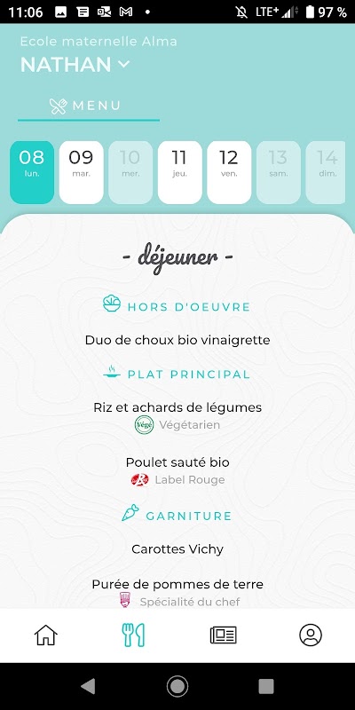 Dengan App'Table, Anda dapat melihat menu anak-anak Anda selama beberapa minggu.