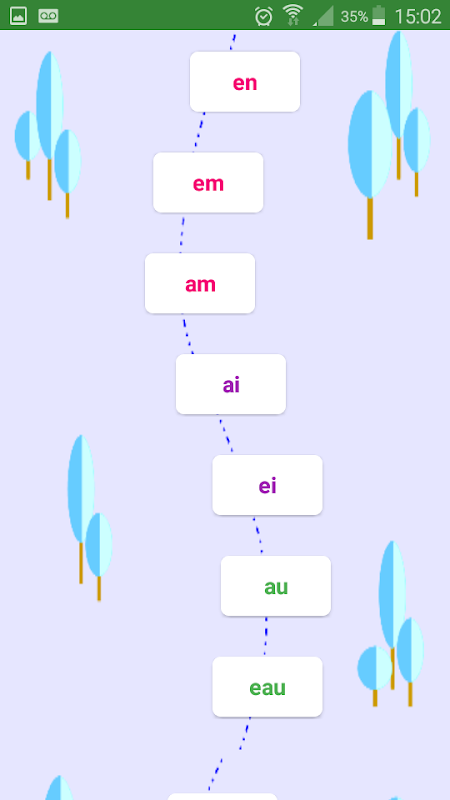 Setiap suku kata dapat didengarkan menggunakan tombol audio. Maka seluruh kata juga bisa didengar. Ilustrasi kata kemudian muncul. Audio jelas dan diucapkan dengan lembut untuk mendengar setiap suara dengan benar. Kuis ditawarkan secara teratur untuk bekerja mendengarkan.