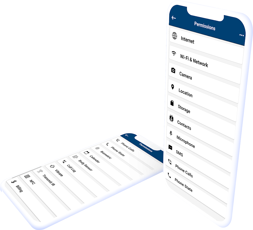 1. Internet, WIFI, Kamera, Lokasi, Penyimpanan, Kontak, Mikrofon, SMS, Panggilan Telepon, Status Telepon, Biometrik, Kalender, Sensor Tubuh, Log Panggilan, Getar, Transmisi IR, NFC, Penagihan