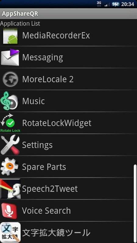 "App Share QR" ditampilkan kode QR membuat dari aplikasi yang dipilih Anda.