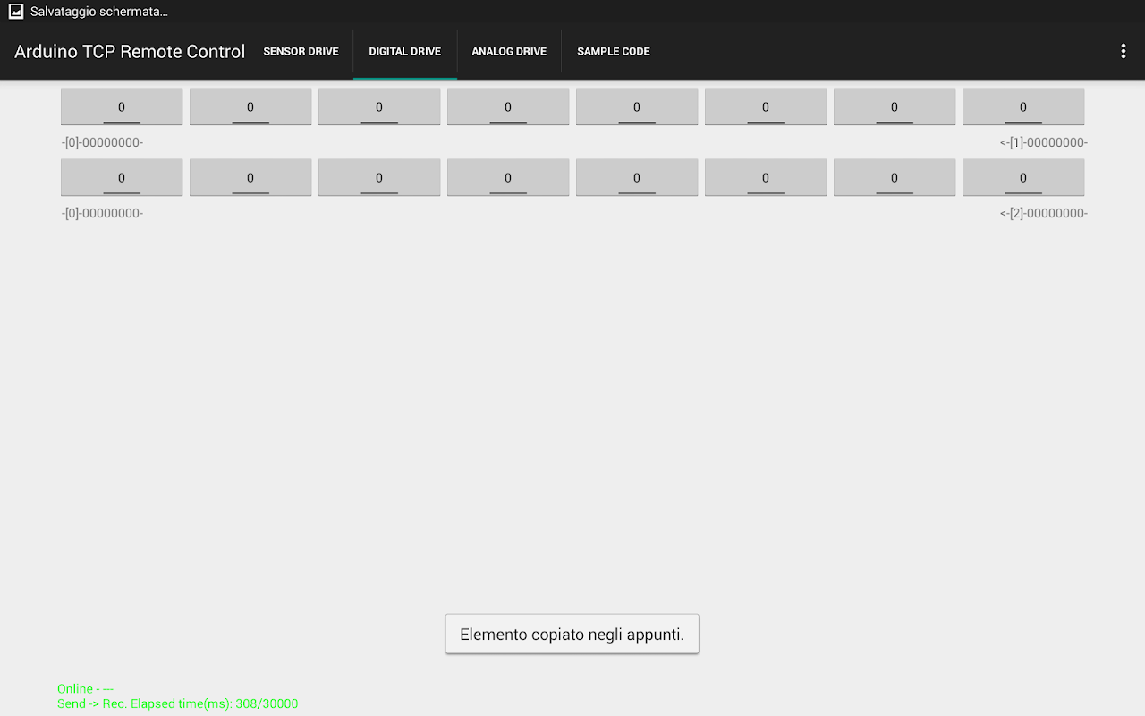 Aplikasi sederhana Client yang menunjukkan bagaimana mungkin menggunakan Sensor Hardware dari Smartphone untuk kontrol Arduino dengan protokol TCP (WiFi Perisai atau Ethernet Perisai). Protokol itu membangun menggunakan 16 byte di mana pertama dan yang terakhir adalah kontrol byte dan 14 byte untuk data. App menunggu selalu untuk umpan balik dari Server TCP, jika itu terjadi dalam kesalahan timeout. Dalam aplikasi ada contoh kode yang dapat Anda memuat di Arduino untuk tes App ini. App ini memiliki ruang lingkup untuk menunjukkan bagaimana menggunakan Sensor Smartphone untuk kontrol Dewan Arduino. Nikmati!