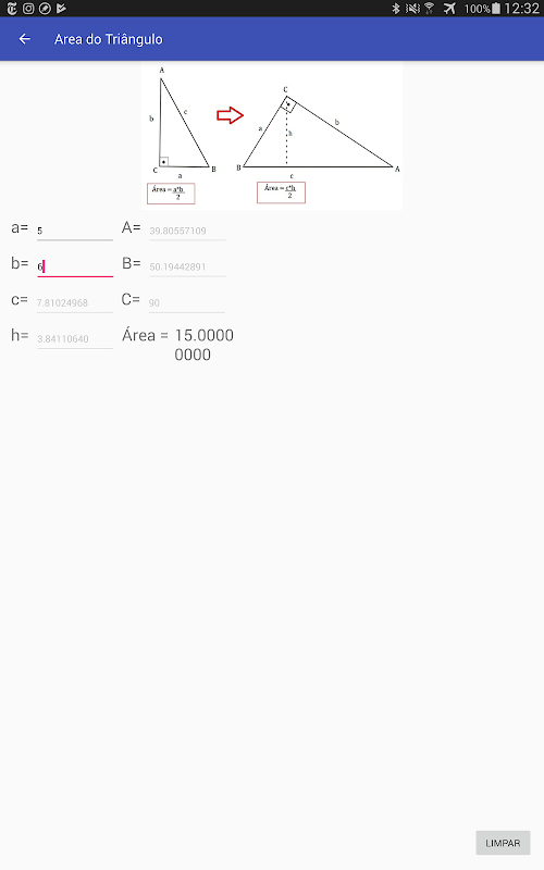 Salah satu aplikasi terbaik dari Play Store, tidak secara otomatis menghitung daerah setelah Anda menempatkan dua atau lebih dimediasi segitiga, dan menghitung daerah juga menghitung semua langkah segitiga lainnya secara otomatis.