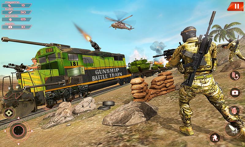 Masuki permainan tembak-menembak yang menegangkan saat Anda mengangkut senjata dan melawan musuh dalam simulator kereta yang penuh aksi. Kendarai kereta tentara melalui zona perang, gunakan artileri berat, dan pertahankan negara Anda dari serangan musuh. Terlibat dalam pertempuran berkecepatan tinggi, buktikan keterampilan Anda dalam misi yang menantang.