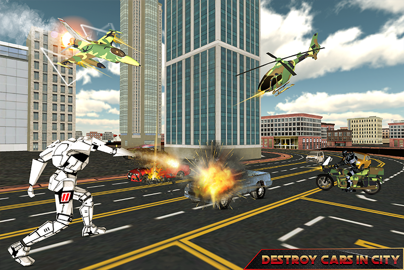 Jika Anda menyukai robot permainan helikopter atau pesawat robot pertempuran jet game maka Anda akan menemukan permainan yang unik dan menarik ini. Terbang militer helikopter serangan atau serangan jet tempur adalah satu hal tetapi Anda dapat menikmati dengan membunuh gangster dan membuat kota aman lagi dengan menghilangkan orang-orang jahat. Nikmati perjalanan cepat dari robot sepeda motor dalam permainan robot sepeda motor ini.