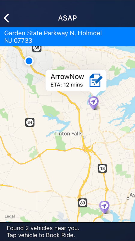 ArrowNow is only available for Monmouth County, NJ pick-ups and drop offs.