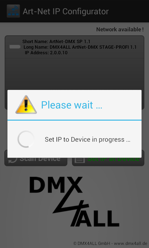 Dieses ist auch dann möglich, wenn die Netzwerkeinstellung des Smartphone/Tablet nicht im IP-Bereich des Art-Net Interfaces liegt.