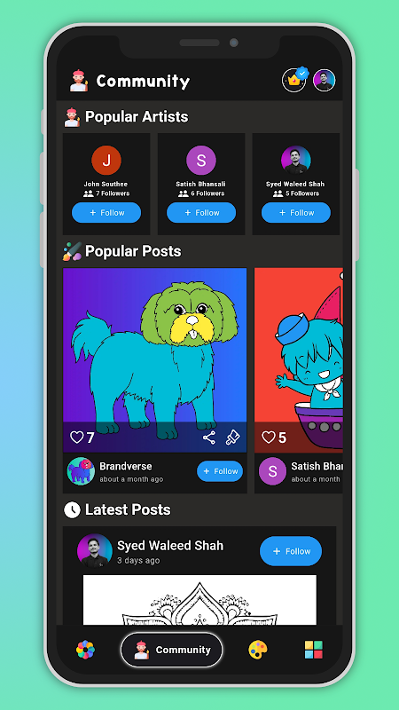 Hubungan Komunitas: Bergabunglah dengan komunitas artistik kami yang berkembang di mana orang-orang yang berpikiran sama berkumpul untuk berbagi kreasi mereka. Dapatkan pengikut, terima suka, dan temukan dunia inspirasi saat Anda terhubung dengan sesama artis dari seluruh dunia.