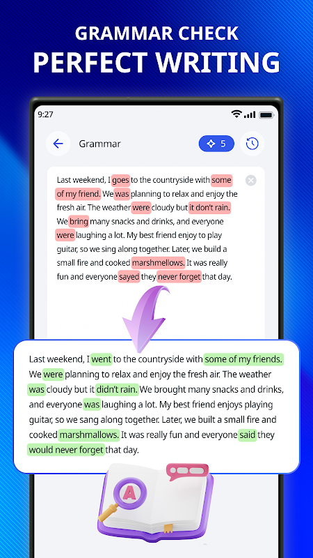Hilangkan kesalahan dan poles teks Anda dengan koreksi tata bahasa profesional.
