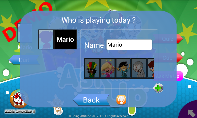 Ask Me Up adalah gim video tentang pengetahuan umum. Prinsipnya cukup sederhana: 1 pertanyaan, 4 kemungkinan jawaban ... Pilih yang benar! Anda tahu semua rahasia selebritas? Anda dapat dengan mudah menempatkan sebuah kota di peta. Anda tahu siapa pelari cepat kulit putih pertama yang secara resmi berlari 100m dalam waktu kurang dari 10 detik? Atau Anda tidak tahu sama sekali? Dalam semua kasus, kuis kami cocok untuk Anda dan Anda akan belajar sambil bersenang-senang! Bermain sendiri atau bersama orang lain, periksa statistik Anda untuk menganalisis kemajuan ... Semua ini mungkin!