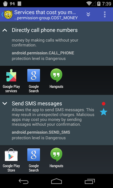 daftar aSpotCat diinstal aplikasi dengan izin untuk membantu Anda menemukan dan menghapus aplikasi berbahaya.