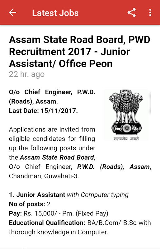 It helps freshers and experienced govt job seekers to search the most relevant government jobs with absolute ease even on the move. This application has also incorporated the latest govt job updates for all Bank jobs, IBPS, Railway jobs, SSC recruitment, Engineering jobs, UPSC recruitment, Defense jobs, Police jobs, Indian Navy, Indian Army, government universities and other government jobs across the nation.