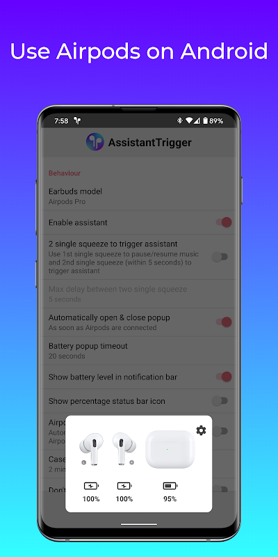 Tampilkan level baterai AirPods dan picu asisten suara di Android
