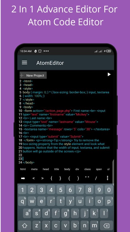 Editor Kode Atom adalah teks dioptimalkan yang berfokus pada pengkodean. Ini adalah alat yang berguna untuk pengembangan di Android.